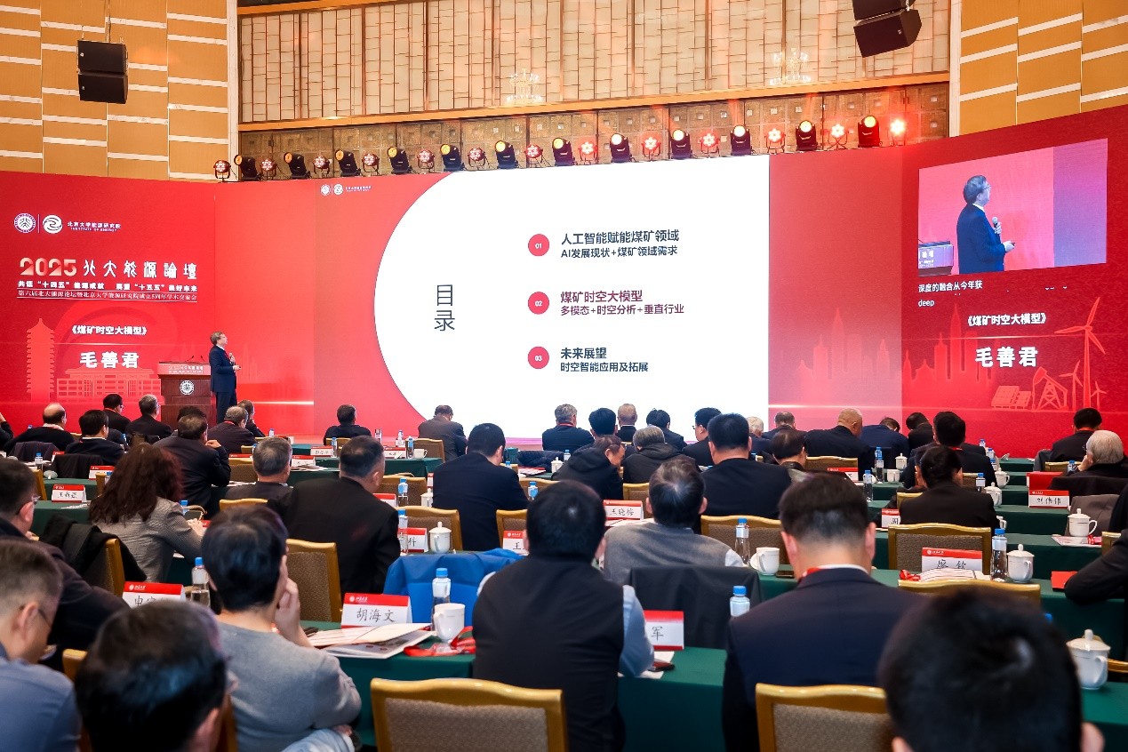 20251028日,第六屆北大能源論壇暨北京大學能源研究院成立五周年學術交流會在北京大學隆重舉行。在黨的二十屆四中全會精神指引下,本屆論壇以回顧十四五能源成就,展望十五五美好未來為主題,進行了廣泛而深入的學術交流。北京大學黨委書記何光彩出席了論壇活動,中國科學院、中國工程院共27位院士及一位國外院士出席了論壇。國際能源署署長法提赫·比羅爾(Fatih Birol)、北京大學副校長樸世龍院士、中國能源研究會理事長史玉波、中國石油學會理事長焦方正、鄂爾多斯市副市長張秀玲分別致辭。中國科學院院士、北京大學能源研究院院長、北京大學鄂爾多斯能源研究院院長金之鈞作研究院五周年工作匯報。北京大學教授、北京大學能源研究院智慧能源方向負責人、北京大學鄂爾多斯能源研究院智慧礦山方向首席科學家、我公司董事長毛善君參加論壇并作《煤礦時空大模型》主旨報告。