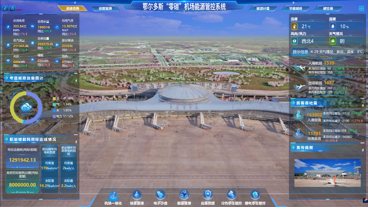 龍軟科技承建的鄂爾多斯零碳機場能源管控系統