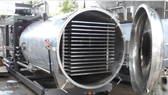 冷凍干燥就是把含有大量水分物質,預先進行降溫凍結成固體,然后在真空的條件下使水蒸氣直接升華出來,而物質本身剩留在凍結時的冰架中,因此它干燥后疏松多孔體積不變。引起產品本身溫度的下降而減慢升華速度,為了增加升華速度,縮短干燥時間,必須要對產品進行適當加熱。整個干燥是在較低的溫度下進行的。